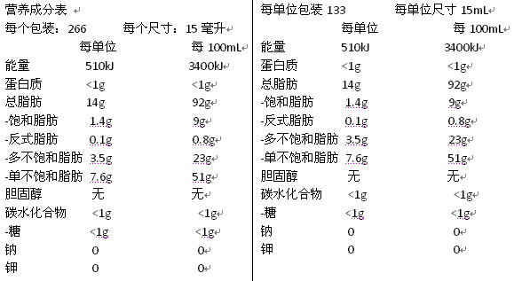挑選一款好的調和油首先要看配方。營(yíng)養科學(xué)發(fā)展到現在,營(yíng)養學(xué)家們已經(jīng)對主要的人體膳食營(yíng)養素做了科學(xué)入量建議,針對咱中國人的2013版《中國居民膳食營(yíng)養素參考攝入量》DRIs中就有膳食脂肪酸的三種脂肪酸攝入量及范圍的建議。當然這個(gè)需要有營(yíng)養學(xué)專(zhuān)家給大家解讀才能明白。對于咱老百姓最簡(jiǎn)單及科學(xué)的方式,就是大家挑選的時(shí)候,一定仔細關(guān)注營(yíng)養標簽中的脂肪酸組成。挑選脂肪酸營(yíng)養配比科學(xué)的食用油。建議您從今天起,選擇有助脂肪酸均衡的健康型調和油。在此附上兩款食用油的營(yíng)養標簽:(從中可以看出兩款油中的脂肪酸含量,對人的健康營(yíng)養攝入具有很大的幫助)。